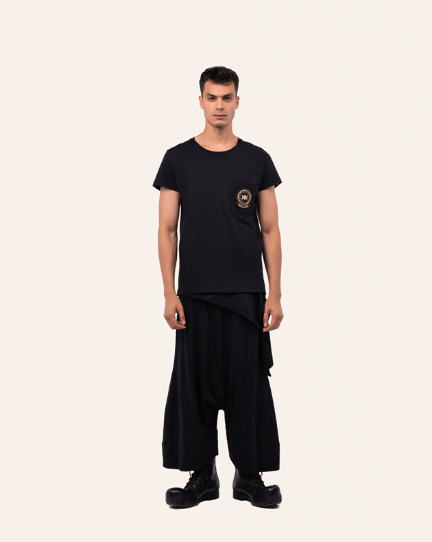 With a wider neckline. They shows the fit that distinguishes the Waseem khadra style.