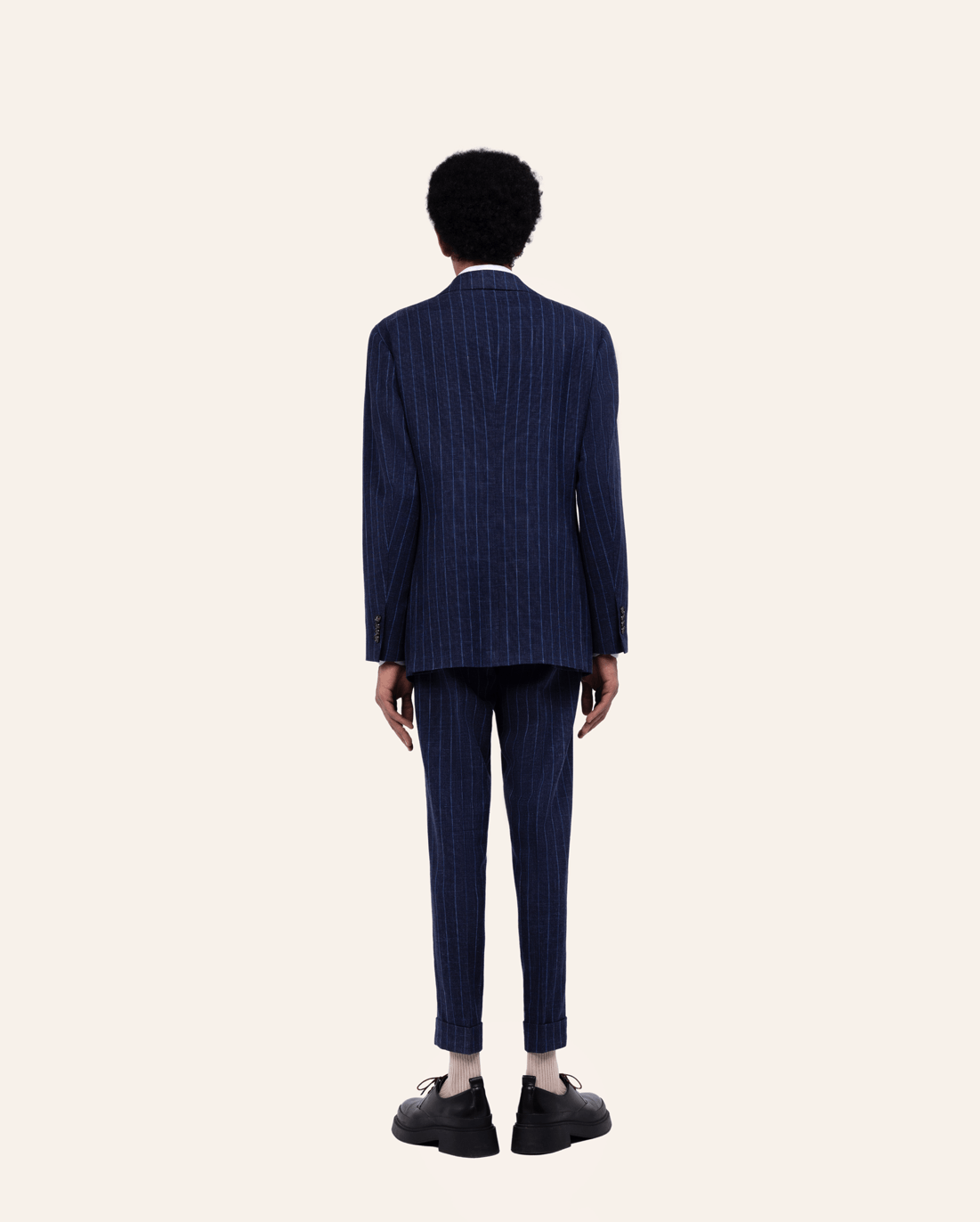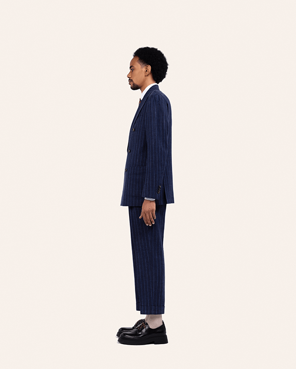 This suit is made from wool, linen, , peak lapel , with six buttons front ,regular fit, interior chest pockets.