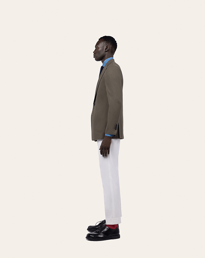 This blazer is made from wool gabardine, No shoulder padding for a more casual look, peak lapel, two-buttons front, regular fit.